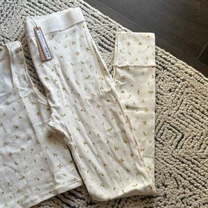 Cozy pajama set featuring a floral tank top and shorts. Perfect for lounging.