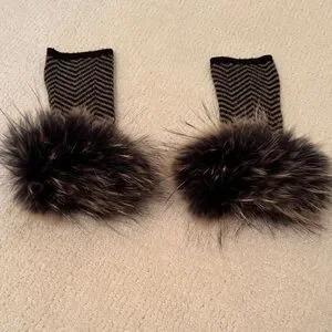Elevate your style with these luxurious black and brown fur cuffs. Perfect for adding a touch of elegance to any outfit. Holes to put your thumb through. Fingerless gloves. Like new