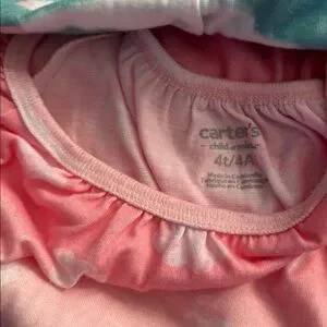 Charming pajama set with pink and blue hues. Soft fabric for comfort.