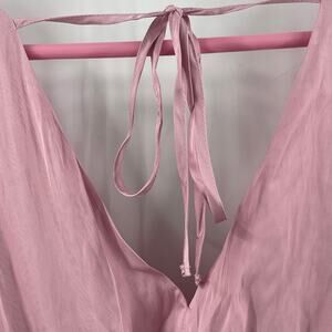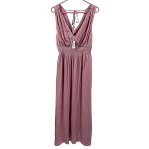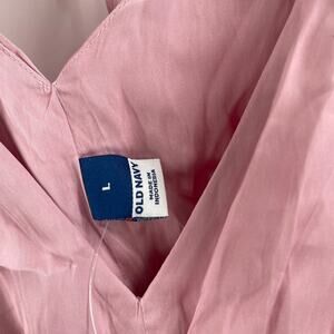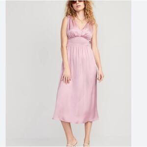 OLD NAVY Dress Large Satin Fit & Flare Sleeveless Smocked Midi Pink V-Neck NWT