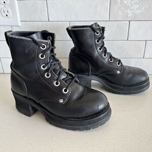 VTG Skechers Sport Utility 90s Y2K Womens Sz 7 Black Chunky Heel Platform Boots