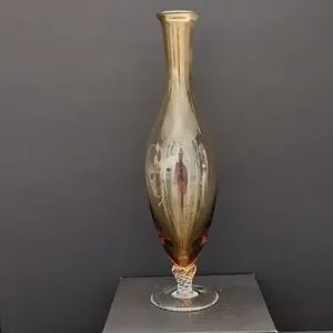VGT,Amber Glass Vase with Twisted Clear Pedestal Base.