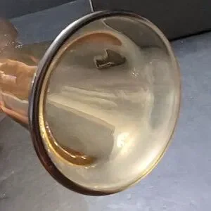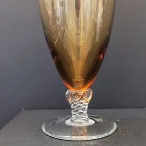 Vintage amber glass vase with twisted clear pedestal base.