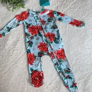 NWT Posh Peanut Winter Lily Ruffled Footie 0-3M Poinsettias