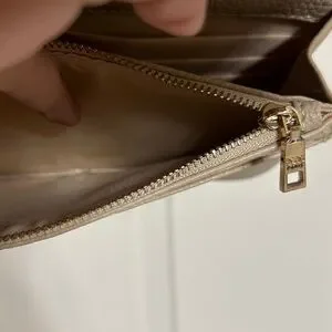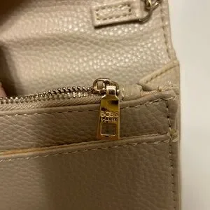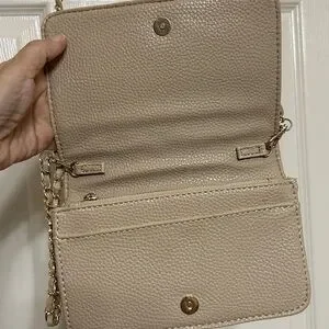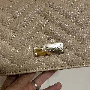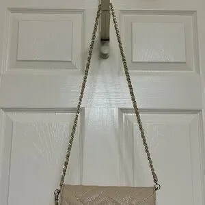 BCBG Paris Quilted Crossbody Bag in Creamy Beige - Wristlet Strap Woven Chain