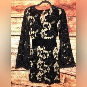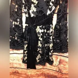 Velvet Lace Illusion Dress Sz Black Flare Sleeve Boho Whimsigoth Flare Sleeve