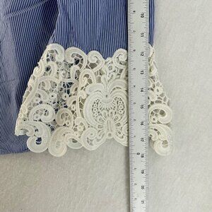 Zara Blouse Women's Sz XS Blue Striped Boat Neck Embroidered Bell 3/4 Sleeve