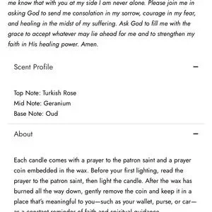 Each candle comes with a prayer to the patron saint and a prayer coin embedded in the wax. Before your first lighting, read the prayer to the patron saint, then light the candle. After the wax has burned all the way down, gently remove the coin and keep it in a place that’s meaningful to you—such as your wallet, purse, or car—as a constant reminder of faith and spiritual guidance.
