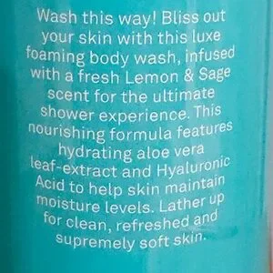 New bottle, not used. Nourishing body wash with lemon and sage. Infused with aloe vera and hyaluronic acid. Refreshing and hydrating formula.