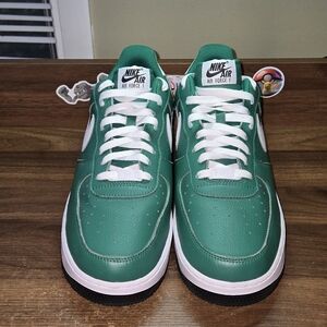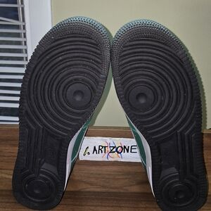 Stylish green sneakers with white accents. Perfect for casual wear. These are the custom made air force ones in a green and white colorway. They are very lightly used. Maybe worn once. There is no box included.