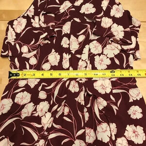 Features: I think this is the prettiest dress ever. It features a halter style neckline with zip up the back. There are ruffles on the top and skirt part which gives it a vintage vibe. The dress is lined and there is no stretch. It is midi length and so flowy and feminine. Wine maroon color.