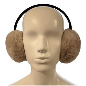 Cozy light brown earmuffs with leather accents.