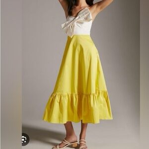 Anthropologie Hutch Color block Strapless Bow Dress NWT Yellow White