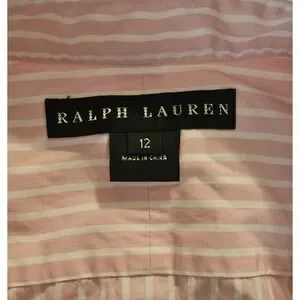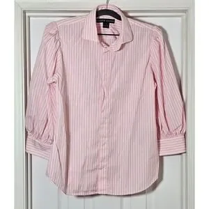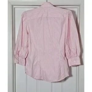 Ralph Lauren Pink Striped Puff Sleeve Button Up Shirt Women's Size 12