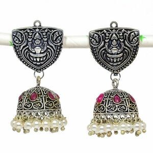 Indian Look Jhumki Gemstone Handmade Silver Tribal Bali Jewelry Earring 2.17"