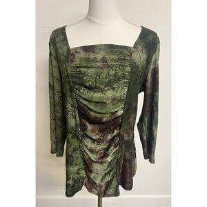 Women’s Y2K Green 3/4 Sleeve Top Size Large Fairy Grunge Witchy Fall