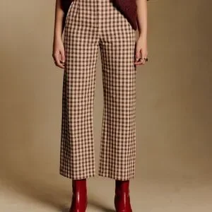 Chic wide leg pants with a checkered pattern. Comfortable and stylish for any occasion.