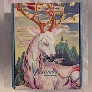 Kalimba box with a vibrant deer illustration. Ideal for music enthusiasts.