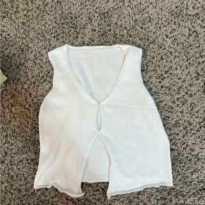 Stylish white sleeveless knit top with a front cut-out design. Perfect for layering or wearing alone.