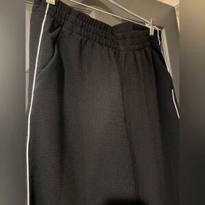 Stylish and versatile black pants from Abercrombie & Fitch featuring a subtle white side stripe. Made from soft, comfortable fabric with an elastic waistband and side pockets for an easy, flattering fit. These pants can be dressed up with a blouse and loafers or kept casual with a tee and sneakers.
