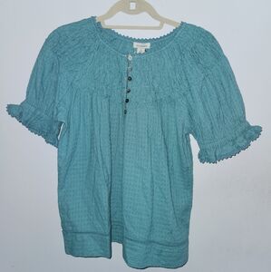 NWT Sundance Lodi Henley Top Brittany Blue Green Blouse