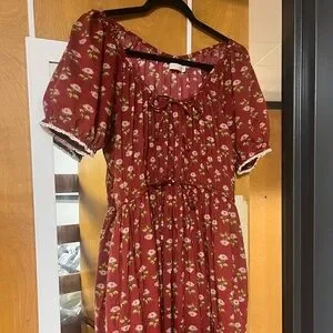 This dress is absolutely precious! The lace and pattern are gorgeous. Selling because it unfortunately doesn’t fit me quite right; would recommend for someone with a shorter torso (I’m 5’8 and find the drawstring hits too far above my waistline) but otherwise would probably fit a M/L. 100% deserves to be worn by someone who can love it even more than I do!!