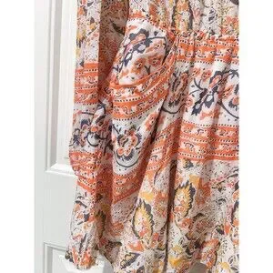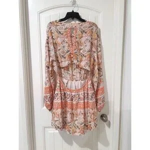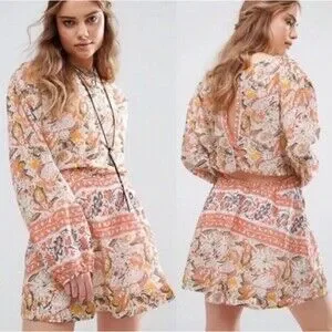Free People Mini Pocket Dress Sun Ruffle Printed Long Sleeve Cut Out Back Button