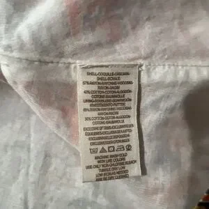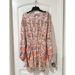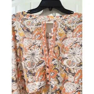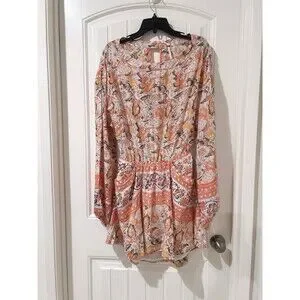 Features: Long sleeve, Floral pattern, Keyhole back, Peach and white colors, Silver sun print, side pockets