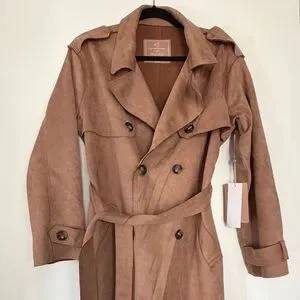 NWT Women’s Faux Suede Trench Coat – Camel Brown – М
