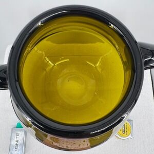 Keywords: glass vase, olive green vase, black handle vase, decorative vase, urn vase, home decor vase, centerpiece vase, modern vase, vintage vase, accent piece, table decor, mantel decor, shelf decor