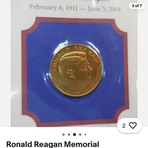 Ronald Reagan Memorial commemorative set includes a photo, and a postcard which includes a 24kt gold electroplated coin. The set is displayed in a binder as shown pet free smoke free home. In new condition.