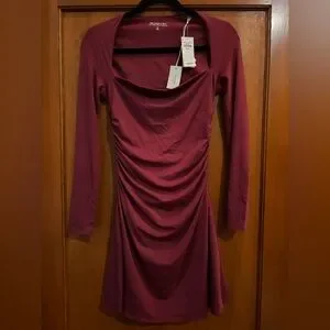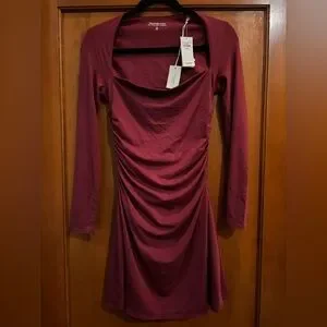 NWT Abercrombie & Fitch Ava Long Sleeve Mini Dress Rich Wine Size M