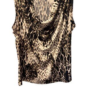 Worthington Womens Sleeveless Cowl Neck Animal Print Top Sz XL blouse