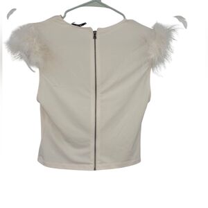 Alice + Olivia Cream Feather Sleeve Crop Top