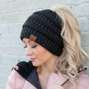 Gray Confetti Messy Bun Beanie