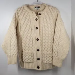 Celtic Country Cream Heavy 100% Wool Cardigan Sweater Women Size Small