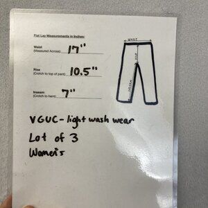 Flat lay measurements (all pairs, approximate): Waist 17" across, Rise 10.5", Inseam 7"