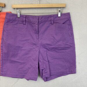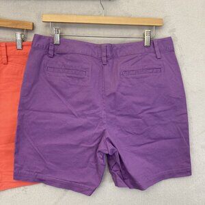 Lot of 3 Lands' End Chino Shorts Womens 10 Coral Purple Brown Casual Cotton