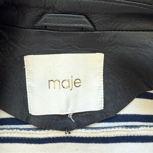 MAJE leather navy women jacket size 36 FR or 6 US Retail 750$
