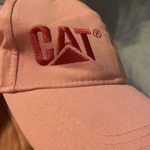 Stylish pink cap with floral embroidery. Features CAT logo.