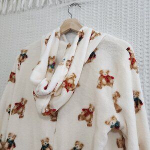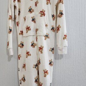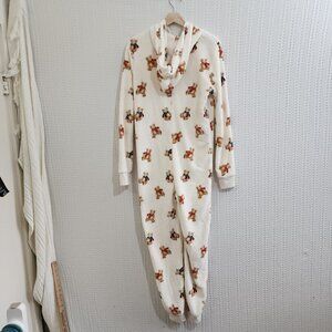 Forever 21 Teddy Bear Fleece Hooded Onesie Pajamas Cream Cozy Size Small