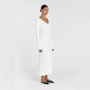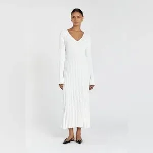 Reign white sleeved knit midi dress by DISSH. Worn once for photo shoot. Size small.