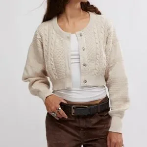 NWT- FP- Heritage Cardigan Cream Cable Knit Women's Sweater
