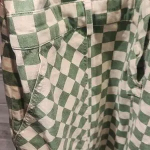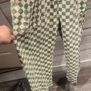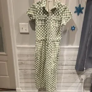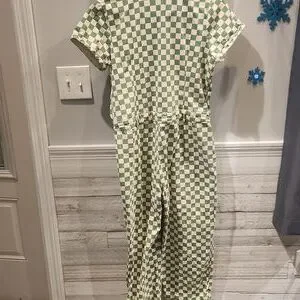 EUC Roolee Green and Cream Checkered Cotton Jumpsuit w/pockets No Sz Tag XS