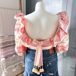 RAISSA Anthropologie Pink Combo Ruffled Cropped Blouse Women’s Medium