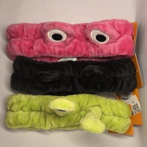 Plush Headbands Set Of 3 Green Alien Pink Monster Black Cat NWT Gift