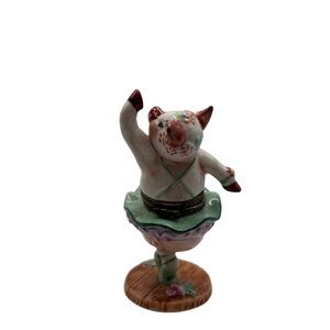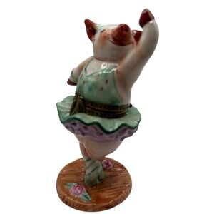 Trinket box Vintage Studio USA Porcelain Dancing Pig Ballerina Hinged Trinket Box