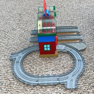 This is a neat set, as trains go over a certain spot in the track the lights turn on and train noises and/or phrases sound. When trains with RFID sensors are used with this set then the phrases are about that specific train. This set requires 3 AAA batteries, not included, but this has been tested and works. This includes the 7 original pieces of track for this set, which stores inside. Smoke free, bundle for combined shipping, much more Thomas listed. 10:9