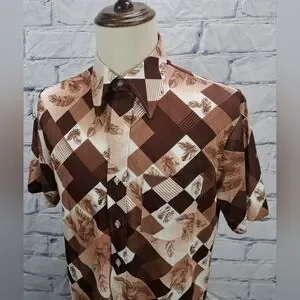 Sears Button Down Sport Shirt S/S Checkered Vintage 70s 80s Canada 16-16.5 Large