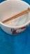 Does not have any sort of pricing tag. Chop sticks have factory tape holding it to the bowl.